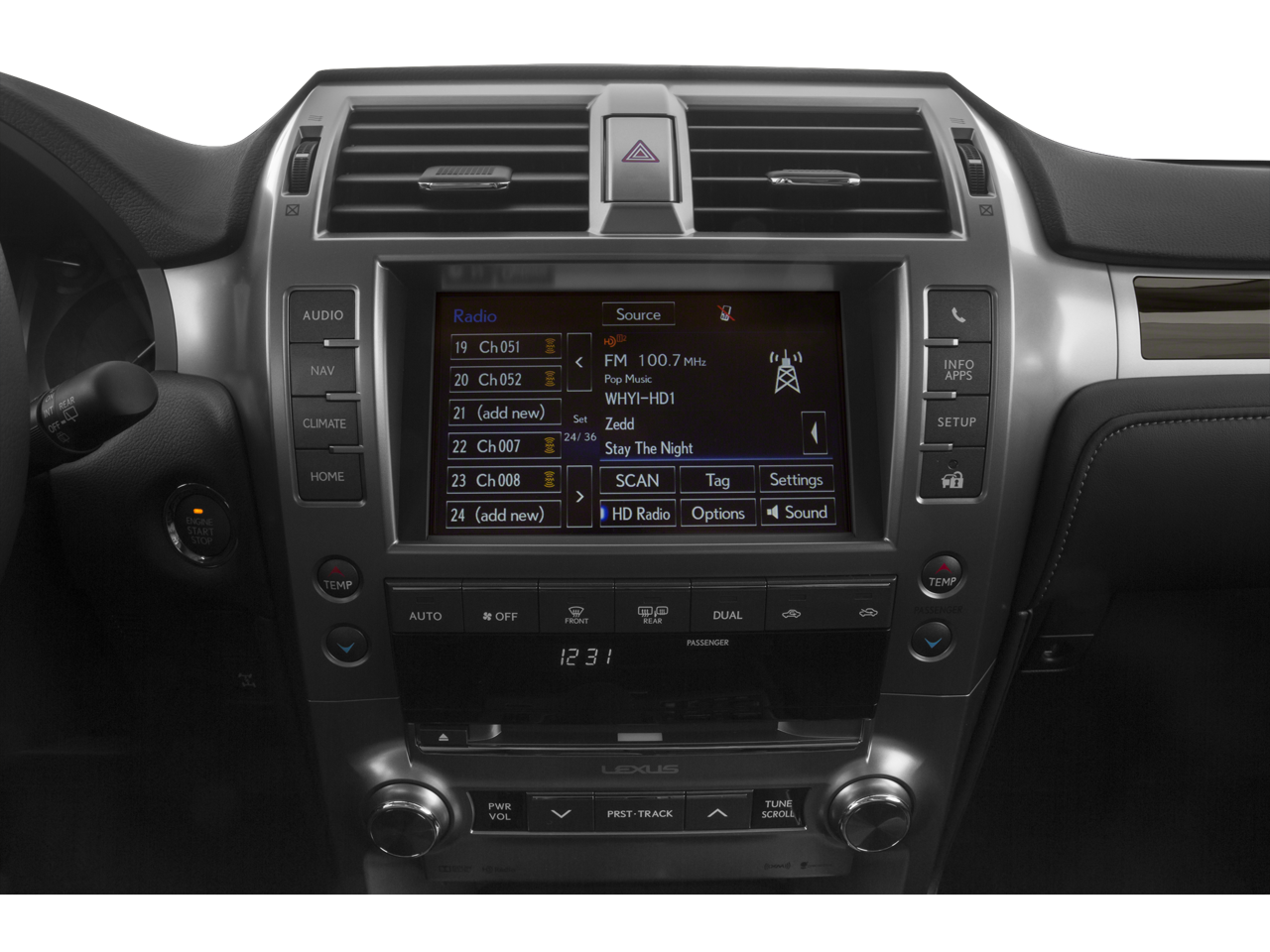 - Radio: AM/FM Lexus Premium Audio -inc: 8" touch screen, 9 speakers, in-dash single CD player w/Automatic Sound Levelizer (ASL), MP3/WMA capability, cache radio, integrated SiriusXM satellite radio receiver (complimentary 90-day trial subscription included), HD Radio real-time traffic and weather, 2 USB ports w/iPod connectivity, Bluetooth® hands free phone w/phonebook download capabilites, music streaming and Siri Eyes Free mode w/select and play music from iTunes, call contacts, hear and compose text messages and emails, hear sports scores, stock information and weather, use maps and get directions (turn-by-turn navigation can be requested through Siri and Apple maps) map displayed on phone screen, perform POI searches, requested search information read back to driver over vehicle audio system, read notifications and read calendar information, add reminders, calendar appointments and notes