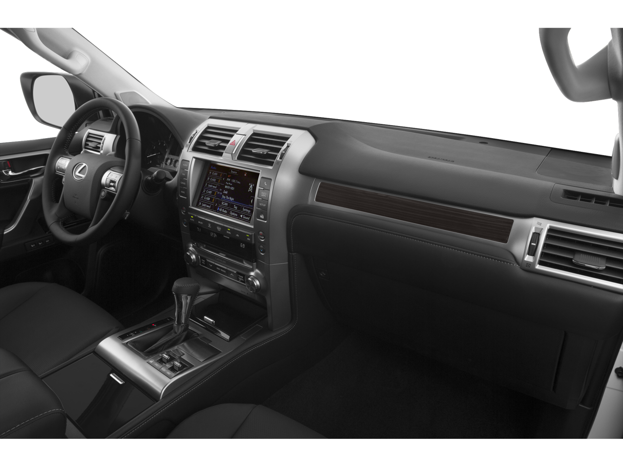 This 2015 Lexus GX 460 in Silver Lining Metallic has the following : Comfort Package (3-Zone Automatic Climate Control, Heated & Ventilated Front Bucket Seats, and Heated 2nd Row Outboard Seats), Navigation Package (Back-Up Camera and Lexus Enform), Premium Package (Intuitive Parking Assist, LED Fog Lamps, Perforated Leather Seat Trim, Rain Sensing Intermittent Wipers, and Wheels: 18 x 7.5 Split 6-Spoke Aluminum Alloy), Blind Spot Monitor w/Rear Cross Traffic Alert, Headlamp Washers, Mahogany Wood & Leather Trimmed Steering Wheel, and Towing Hitch w/Ball Mount Comfort Package (3-Zone Automatic Climate Control, Heated & Ventilated Front Bucket Seats, and Heated 2nd Row Outboard Seats), Navigation Package (Back-Up Camera and Lexus Enform), Premium Package (Intuitive Parking Assist, LED Fog Lamps, Perforated Leather Seat Trim, Rain Sensing Intermittent Wipers, and Wheels: 18 x 7.5 Split 6-Spoke Aluminum Alloy), Blind Spot Monitor w/Rear Cross Traffic Alert, Headlamp Washers, Mahogany Wood & Leather Trimmed Steering Wheel, Towing Hitch w/Ball Mount, 18 x 7.5 6-Spoke Aluminum Alloy Wheels, 3.909 Axle Ratio, 3rd row seats: split-bench, 4-Wheel Disc Brakes, 9 Speakers, ABS brakes, Air Conditioning, Alloy wheels, AM/FM radio: SiriusXM, Anti-whiplash front head restraints, Auto tilt-away steering wheel, Auto-dimming Rear-View mirror, Automatic temperature control, Bodyside moldings, Brake assist, Bumpers: body-color, CD player, Compass, Delay-off headlights, Driver door bin, Driver vanity mirror, Driver's Seat Mounted Armrest, Dual front impact airbags, Dual front side impact airbags, Electronic Stability Control, Emergency communication system: Safety Connect, Exterior Parking Camera Rear, Front anti-roll bar, Front Bucket Seats, Front dual zone A/C, Front reading lights, Front wheel independent suspension, Fully automatic headlights, Garage door transmitter: HomeLink, Heated door mirrors, Heated front seats, Illuminated entry, Illuminated running boards, Knee airbag, Leather Shift Knob, Leather steering wheel, Low tire pressure warning, Memory seat, NuLuxe Seat Trim, Occupant sensing airbag, Outside temperature display, Overhead airbag, Overhead console, Panic alarm, Passenger door bin, Passenger seat mounted armrest, Passenger vanity mirror, Power door mirrors, Power driver seat, Power moonroof, Power passenger seat, Power steering, Power windows, Radio data system, Radio: AM/FM Lexus Premium Audio, Rear anti-roll bar, Rear reading lights, Rear seat center armrest, Rear side impact airbag, Rear window defroster, Rear window wiper, Remote keyless entry, Roof rack: rails only, Security system, Speed control, Speed-sensing steering, Split folding rear seat, Spoiler, Steering wheel memory, Steering wheel mounted audio controls, Tachometer, Telescoping steering wheel, Tilt steering wheel, Traction control, Trip computer, Turn signal indicator mirrors, and Variably intermittent wipers.