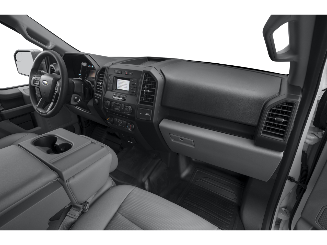 This 2019 Ford F-150 XL in Ingot Silver has the following : Equipment Group 101A Mid (4.2 Productivity Screen in Instrument Cluster, Cruise Control, and SYNC), STX Appearance Package (20 Machined-Aluminum Wheels, Body-Color Front & Rear Bumpers, Body-Color Surround w/Black Mesh Insert Grille, Box Side Decals, Driver/Passenger Seat Back Pocket, Fog Lamps, Manual Driver/Passenger Lumbar, Rear Window Defroster, Rear Window Fixed Privacy Glass, SYNC 3, and Unique Sport Cloth 40/20/40 Front-Seats), XL Power Equipment Group (Illuminated Entry, MyKey, Perimeter Alarm, Power Door Locks, Power Front & Rear Windows, Power Glass Sideview Mirrors w/Black Skull Caps, and Power Tailgate Lock), XL Sport Appearance Package (Wheels: 17 Silver Painted Aluminum), 3.55 Axle Ratio, 4-Wheel Disc Brakes, 6 Speakers, ABS brakes, Air Conditioning, AM/FM radio, Auto High-beam Headlights, Black Platform Running Boards, Brake assist, Class IV Trailer Hitch Receiver, Cloth 40/20/40 Front Seat, Color-Coordinated Carpet w/Carpeted Floor Mats, Compass, Delay-off headlights, Driver door bin, Dual front impact airbags, Dual front side impact airbags, Electronic Stability Control, Exterior Parking Camera Rear, Front anti-roll bar, Front Center Armrest, Front License Plate Bracket, Front wheel independent suspension, Fully automatic headlights, Low tire pressure warning, Occupant sensing airbag, Outside temperature display, Overhead airbag, Passenger door bin, Passenger vanity mirror, Power steering, Radio: AM/FM Stereo w/6 Speakers, Rear step bumper, SiriusXM Radio, Speed-sensing steering, Split folding rear seat, Tachometer, Telescoping steering wheel, Tilt steering wheel, Tough Bed Spray-In Bedliner, Traction control, Variably intermittent wipers, Voltmeter, and Wheels: 17 Silver Steel.