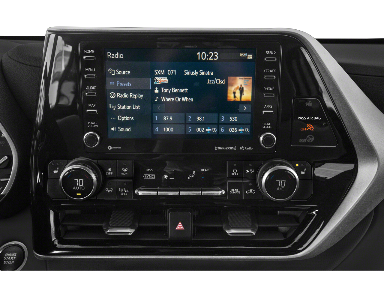 This 2020 Toyota Highlander XLE in Blizzard Pearl has the following : 18 Machined Alloy Wheels, 3.003 Axle Ratio, 3rd row seats: split-bench, 4-Wheel Disc Brakes, 6 Speakers, ABS brakes, Air Conditioning, Alloy wheels, AM/FM radio: SiriusXM, Apple CarPlay/Android Auto, Auto High-beam Headlights, Auto-dimming Rear-View mirror, Automatic temperature control, Brake assist, Bumpers: body-color, Delay-off headlights, Driver door bin, Driver vanity mirror, Dual front impact airbags, Dual front side impact airbags, Electronic Stability Control, Emergency communication system: Safety Connect with 3-year trial, Exterior Parking Camera Rear, Four wheel independent suspension, Front anti-roll bar, Front Bucket Seats, Front Center Armrest, Front dual zone A/C, Front fog lights, Front reading lights, Fully automatic headlights, Garage door transmitter: HomeLink, Heated door mirrors, Heated Front Bucket Seats, Heated front seats, Illuminated entry, Knee airbag, Leather Shift Knob, Low tire pressure warning, Occupant sensing airbag, Outside temperature display, Overhead airbag, Overhead console, Panic alarm, Passenger door bin, Passenger vanity mirror, Power door mirrors, Power driver seat, Power Liftgate, Power moonroof, Power passenger seat, Power steering, Power windows, Radio: Audio Plus (T1 Hi), Rear air conditioning, Rear anti-roll bar, Rear reading lights, Rear window defroster, Rear window wiper, Reclining 3rd row seat, Remote keyless entry, Roof rack: rails only, Security system, SofTex Seat Trim, Speed control, Speed-sensing steering, Split folding rear seat, Spoiler, Steering wheel mounted audio controls, Tachometer, Telescoping steering wheel, Tilt steering wheel, Traction control, Trip computer, Turn signal indicator mirrors, and Variably intermittent wipers.