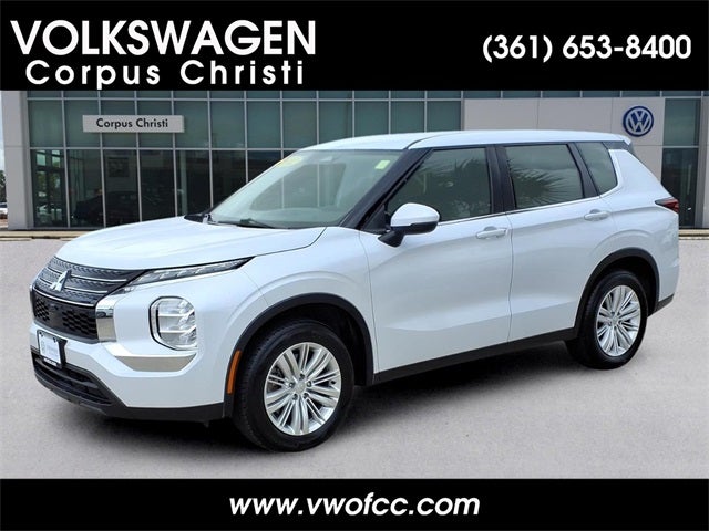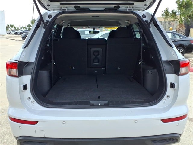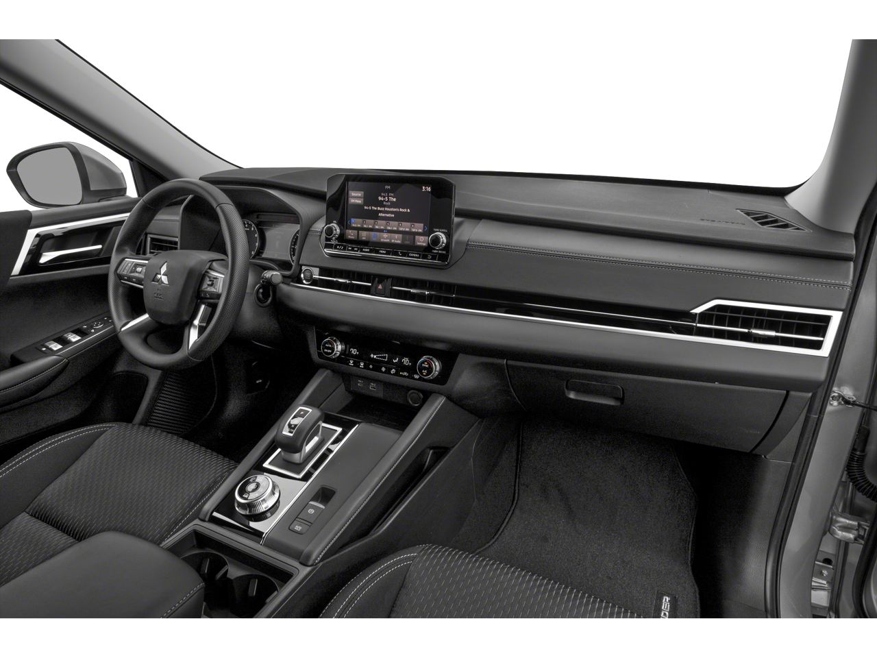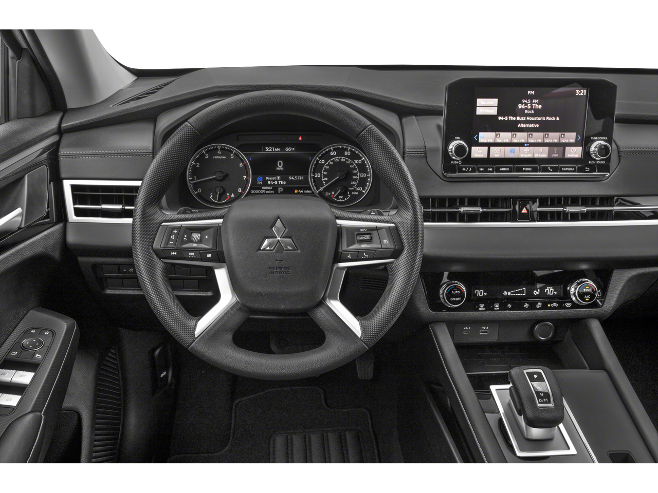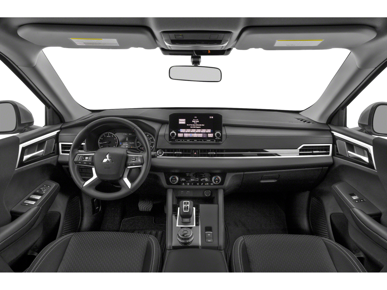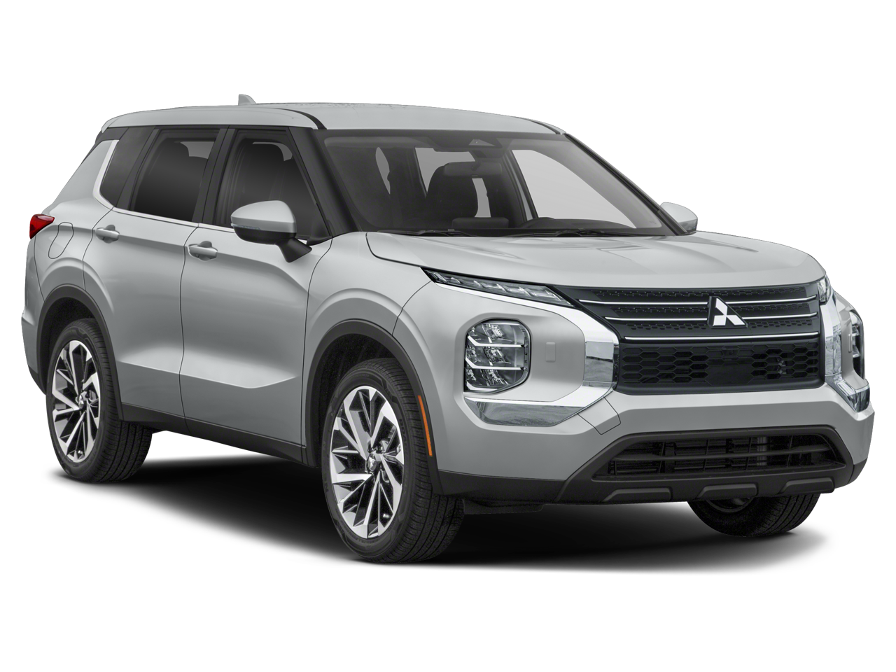 This 2022 Mitsubishi Outlander ES in White has the following : 18 x 7.5J Alloy Wheels, 3rd row seats: split-bench, 4-Wheel Disc Brakes, 6 Speakers, ABS brakes, Air Conditioning, Alloy wheels, AM/FM radio: SiriusXM, Android Auto & Apple CarPlay, Auto High-beam Headlights, Automatic temperature control, Axle Ratio: 5.694, Brake assist, Bumpers: body-color, Driver door bin, Driver vanity mirror, Dual front impact airbags, Dual front side impact airbags, Electronic Stability Control, Exterior Parking Camera Rear, Fabric Seat Trim, Four wheel independent suspension, Front anti-roll bar, Front Bucket Seats, Front Center Armrest w/Storage, Front dual zone A/C, Front reading lights, Fully automatic headlights, Illuminated entry, Knee airbag, Low tire pressure warning, Occupant sensing airbag, Outside temperature display, Overhead airbag, Overhead console, Panic alarm, Passenger door bin, Passenger vanity mirror, Power door mirrors, Power steering, Power windows, Radio data system, Radio: AM/FM 8.0 Smartphone Link Display Audio, Rear anti-roll bar, Rear Parking Sensors, Rear seat center armrest, Rear side impact airbag, Rear window defroster, Rear window wiper, Reclining 3rd row seat, Remote keyless entry, Security system, Speed control, Speed-Sensitive Wipers, Split folding rear seat, Spoiler, Steering wheel mounted audio controls, Tachometer, Telescoping steering wheel, Tilt steering wheel, Traction control, Trip computer, Turn signal indicator mirrors, and Variably intermittent wipers.