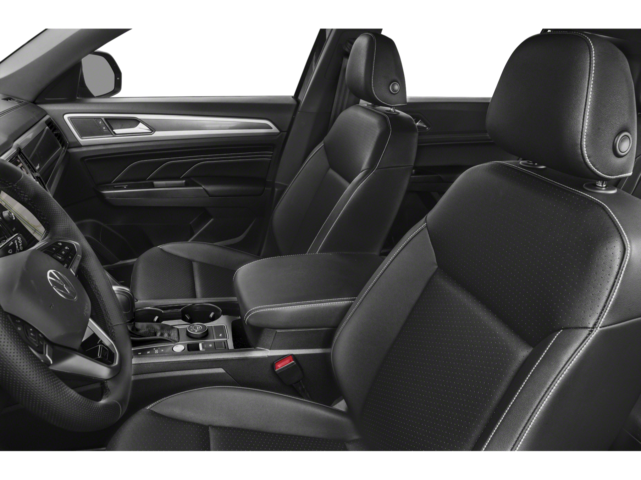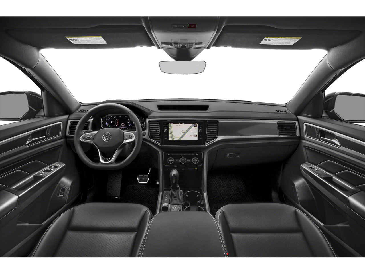 This 2022 Volkswagen Atlas Cross Sport 3.6L V6 SEL Premium R-Line in Deep Black has the following : Cross Sport MDO Package (DISC) (Frameless Auto-Dimming Rearview Mirror, Heavy Duty Trunk Liner w/VW CarGo Blocks, Privacy Cover (DISC), and Rubber Mats Kit), 12 Speakers, 3.60 Axle Ratio, 4-Wheel Disc Brakes, ABS brakes, Air Conditioning, Alloy wheels, AM/FM radio: SiriusXM with 360L, Auto High-beam Headlights, Auto-dimming Rear-View mirror, Automatic temperature control, Brake assist, Bumpers: body-color, Compass, Delay-off headlights, Driver door bin, Driver vanity mirror, Dual front impact airbags, Dual front side impact airbags, Electronic Stability Control, Emergency communication system, Four wheel independent suspension, Front anti-roll bar, Front Bucket Seats, Front Center Armrest, Front dual zone A/C, Front fog lights, Front reading lights, Fully automatic headlights, Heated & Ventilated Front Comfort Sport Seats, Heated door mirrors, Heated front seats, Heated rear seats, Heated steering wheel, Illuminated entry, Leather Shift Knob, Low tire pressure warning, Memory seat, Navigation System, Occupant sensing airbag, Outside temperature display, Overhead airbag, Overhead console, Panic alarm, Passenger door bin, Passenger vanity mirror, Perforated Vienna Leather Seating Surfaces, Power door mirrors, Power driver seat, Power Liftgate, Power moonroof: Panoramic, Power passenger seat, Power steering, Power windows, Radio data system, Radio: MIB3 Discover Media w/8 Touchscreen Navigation, Rain sensing wipers, Rear anti-roll bar, Rear reading lights, Rear seat center armrest, Rear window defroster, Rear window wiper, Remote keyless entry, Roadside Assistance Kit, Roof rack: rails only, Security system, Speed control, Speed-sensing steering, Split folding rear seat, Spoiler, Sport steering wheel, Standard Suspension, Steering wheel mounted audio controls, Tachometer, Telescoping steering wheel, Tilt steering wheel, Traction control, Trip computer, Turn signal indicator mirrors, Variably intermittent wipers, Ventilated front seats, Volkswagen Logo Puddle Lights, VW Car-Net Safe & Secure 5-Year, VW Care, and Wheels: 21 x 8J 2-Tone Machined Alloy.