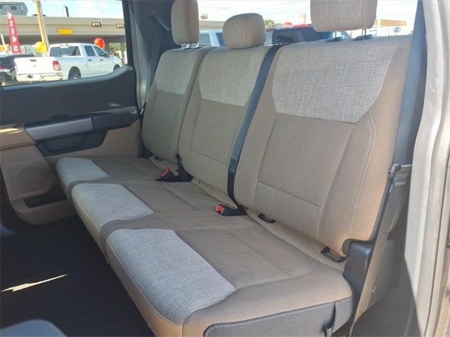 This 2023 Ford F-150 XLT in Black Metallic has the following : 4-Wheel Disc Brakes, 6 Speakers, 8-Way Power Driver's Seat w/Power Lumbar, ABS brakes, Air Conditioning, Alloy wheels, AM/FM radio, Auto High-beam Headlights, Brake assist, Bumpers: chrome, Cloth 40/20/40 Front Seat, Compass, Delay-off headlights, Driver door bin, Driver vanity mirror, Dual front impact airbags, Dual front side impact airbags, Electronic Stability Control, Emergency communication system: SYNC 4 911 Assist, Exterior Parking Camera Rear, Front anti-roll bar, Front Center Armrest w/Storage, Front fog lights, Front License Plate Bracket, Front reading lights, Front wheel independent suspension, Fully automatic headlights, Heated door mirrors, Illuminated entry, Low tire pressure warning, Occupant sensing airbag, Outside temperature display, Overhead airbag, Overhead console, Panic alarm, Passenger door bin, Passenger vanity mirror, Power door mirrors, Power steering, Power windows, Radio data system, Radio: AM/FM Stereo w/6 Speakers, Rear reading lights, Rear step bumper, Rear window defroster, Remote keyless entry, Security system, Speed control, Speed-sensing steering, Split folding rear seat, Steering wheel mounted audio controls, SYNC 4, Tachometer, Telescoping steering wheel, Tilt steering wheel, Traction control, Trip computer, Variably intermittent wipers, Voltmeter, and Wheels: 17 Silver Painted Aluminum.