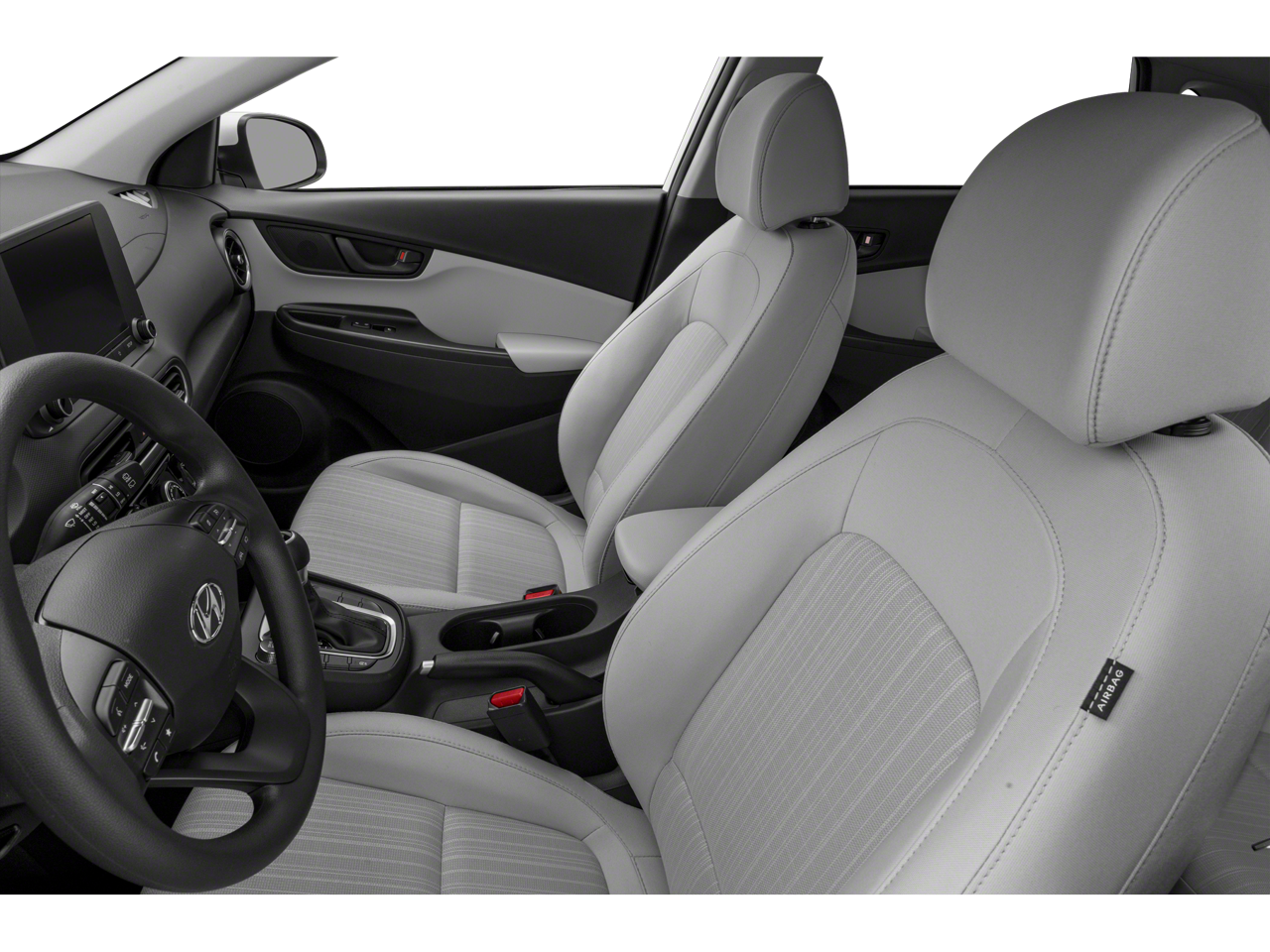 This 2023 Hyundai Kona SEL in Abyss Black Pearl has the following : Convenience Package (Automatic Temperature Control, Heated Front Seats, Hidden Cargo-Area Storage Compartment, Hyundai Digital Key, Leather-Wrapped Shift Knob, Leather-Wrapped Steering Wheel, Option Group 02, Power Tilt-and-Slide Sunroof, Radio: AM/FM/SiriusXM/HD Audio System, and Wireless Device Charging), 17 x 7.0J Alloy Wheels, 4-Wheel Disc Brakes, 5.715 Axle Ratio, 6 Speakers, ABS brakes, Air Conditioning, Alloy wheels, AM/FM radio: SiriusXM, Apple CarPlay & Android Auto, Brake assist, Bumpers: body-color, Cargo Net, Cargo Tray, Carpeted Floor Mats, Cloth Seat Trim, Delay-off headlights, Driver door bin, Driver vanity mirror, Dual front impact airbags, Dual front side impact airbags, Electronic Stability Control, Emergency communication system: Blue Link Connected Car Service (3-year complimentary subscription), Exterior Parking Camera Rear, Front anti-roll bar, Front Bucket Seats, Front Center Armrest, Front reading lights, Front wheel independent suspension, Fully automatic headlights, Heated door mirrors, Illuminated entry, Low tire pressure warning, Occupant sensing airbag, Outside temperature display, Overhead airbag, Overhead console, Panic alarm, Passenger door bin, Passenger vanity mirror, Power door mirrors, Power driver seat, Power steering, Power windows, Radio: AM/FM/HD/SiriusXM Audio System, Rear seat center armrest, Rear window defroster, Rear window wiper, Remote keyless entry, Roof Rack Cross Rails (DISC), Security system, Speed control, Speed-sensing steering, Split folding rear seat, Spoiler, Steering wheel mounted audio controls, Tachometer, Telescoping steering wheel, Tilt steering wheel, Traction control, Trip computer, Turn signal indicator mirrors, and Variably intermittent wipers.