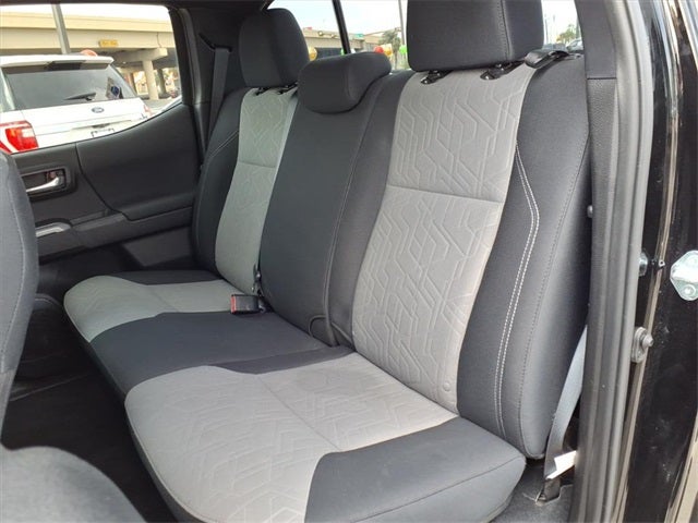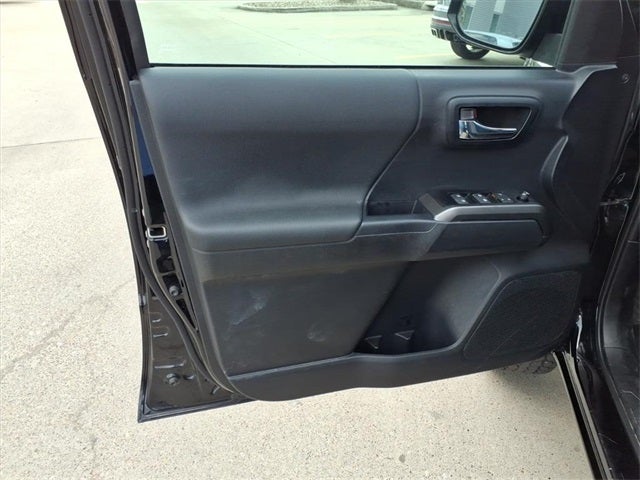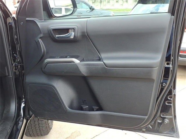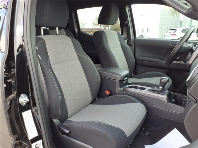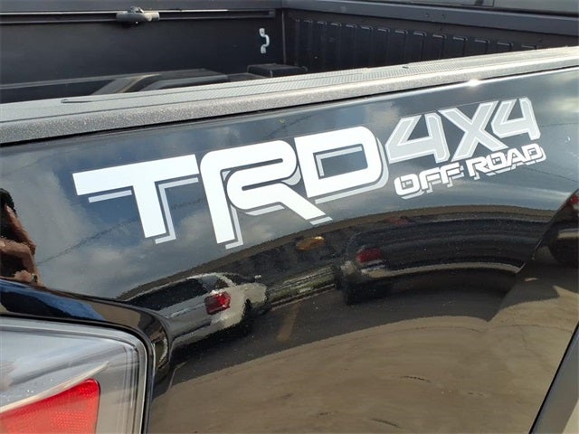 This 2023 Toyota Tacoma TRD Off-Road in Black has the following : 4WD, ABS brakes, Alloy wheels, Electronic Stability Control, Front dual zone A/C, Heated door mirrors, Illuminated entry, Low tire pressure warning, Remote keyless entry, and Traction control 4WD, ABS brakes, Alloy wheels, Electronic Stability Control, Front dual zone A/C, Heated door mirrors, Illuminated entry, Low tire pressure warning, Remote keyless entry, Traction control, 120V/400W Deck Mounted AC Power, 6 Speakers, Air Conditioning, AM/FM radio: SiriusXM, Anti-whiplash front head restraints, Apple CarPlay/Android Auto, Auto High-beam Headlights, Auto-dimming Rear-View mirror, Auto-Dimming Rearview Mirror w/HomeLink, Automatic temperature control, Black Overfenders, Brake assist, Bumpers: body-color, Driver door bin, Dual front impact airbags, Dual front side impact airbags, Emergency communication system: Safety Connect (1-year trial), Engine Immobilizer, Exterior Parking Camera Rear, Fabric Seat Trim, Front anti-roll bar, Front Bucket Seats, Front Center Armrest, Front fog lights, Front reading lights, Front Seats, Front wheel independent suspension, Garage door transmitter: HomeLink, Knee airbag, Leather Shift Knob, Occupant sensing airbag, Outside temperature display, Overhead airbag, Overhead console, Panic alarm, Passenger door bin, Power door mirrors, Power driver seat, Power Sliding Rear Window w/Privacy Glass, Power steering, Power windows, Radio: Audio, Rear step bumper, Security system, Speed control, Speed-sensing steering, Split folding rear seat, Steering wheel mounted audio controls, Tachometer, Telescoping steering wheel, Tilt steering wheel, Trip computer, Turn signal indicator mirrors, Variably intermittent wipers, and Wheels: 16 Machined Contrast Alloy.