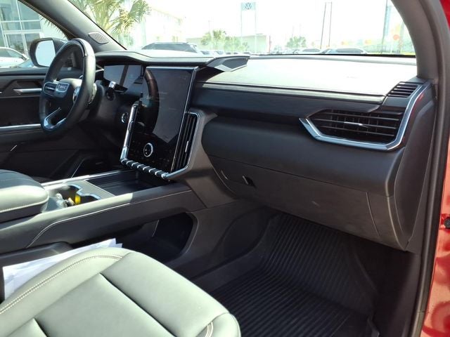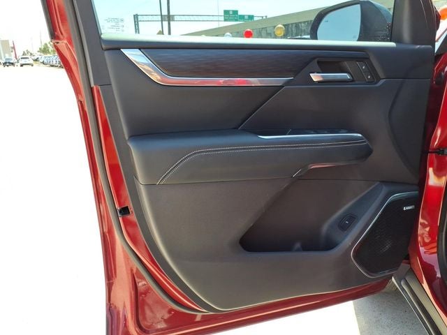 This 2024 GMC Acadia Elevation in Volcanic Red Tintcoat has the following : FWD and After Dark Cloth Black Edition (Performance Suspension and Wheels: 22 x 8.5 Gloss Black Aluminum), Floor Liner Package (LPO) (1st & 2nd Row All-Weather Floor Liner (LPO) and 3rd Row All-Weather Floor Liner (LPO)), Luxury Package (8 Diagonal Head-Up Display, Heated Rear Outboard Seating Positions, Heated Wiper Park, and Laminated Acoustic Glass), Preferred Equipment Group 4SC, Super Cruise Package (Driver Attention Assist, Enhanced Automatic Parking Assist, and Super Cruise), Trailering Package (220 Amp Alternator, Heavy-Duty Cooling System, Hitch View, and Trailering Assist Guideline Hitch Guidance), FWD, After Dark Cloth, 12 Speakers, 3.49 Final Drive Axle Ratio, 3rd row seats: split-bench, 4-Wheel Disc Brakes, 6-Way Power Front Passenger Seat Adjuster, 7-Passenger Seating (2-2-3 Seating Configuration), 8-Way Power Driver Seat Adjuster, ABS brakes, Air Conditioning, Alloy wheels, AM/FM radio: SiriusXM with 360L, Apple CarPlay/Android Auto, Auto High-beam Headlights, Auto-dimming Rear-View mirror, Automatic temperature control, Bodyside moldings, Bose Performance 12-Speaker System w/Sub-woofer, Brake assist, Bumpers: body-color, Compass, CoreTec Seat Trim, Delay-off headlights, Driver 4-Way Power Lumbar Seat Adjuster, Driver door bin, Driver vanity mirror, Dual front impact airbags, Dual front side impact airbags, Electronic Stability Control, Emergency communication system: OnStar and GMC connected services capable, Exterior Parking Camera Rear, Four wheel independent suspension, Front anti-roll bar, Front Bucket Seats, Front Center Armrest, Front dual zone A/C, Front fog lights, Front License Plate Bracket, Front Passenger 4-Way Power Lumbar Seat Adjuster, Front reading lights, Fully automatic headlights, Garage door transmitter, Heated door mirrors, Heated Driver & Front Passenger Seats, Heated front seats, Heated steering wheel, Illuminated entry, Integrated Cargo Liner (LPO), Leather steering wheel, Low tire pressure warning, Navigation System, Not Equipped w/Heated Wiper Park, Occupant sensing airbag, Outside temperature display, Overhead airbag, Overhead console, Panic alarm, Panoramic Power Sunroof w/Sunshade, Passenger door bin, Passenger vanity mirror, Power door mirrors, Power driver seat, Power Liftgate, Power passenger seat, Power steering, Power windows, Radio data system, Radio: 15 Premium GMC Infotainment System, Rear air conditioning, Rear anti-roll bar, Rear reading lights, Rear side impact airbag, Rear window defroster, Rear window wiper, Remote keyless entry, Security system, SiriusXM w/360L, Speed control, Speed-sensing steering, Split folding rear seat, Spoiler, Sport steering wheel, Steering wheel mounted audio controls, Tachometer, Telescoping steering wheel, Tilt steering wheel, Traction control, Trip computer, Turn signal indicator mirrors, Variably intermittent wipers, Voltmeter, and Wheels: 20 x 8 Bright Silver Aluminum.