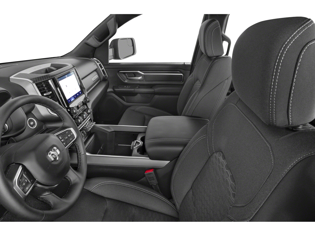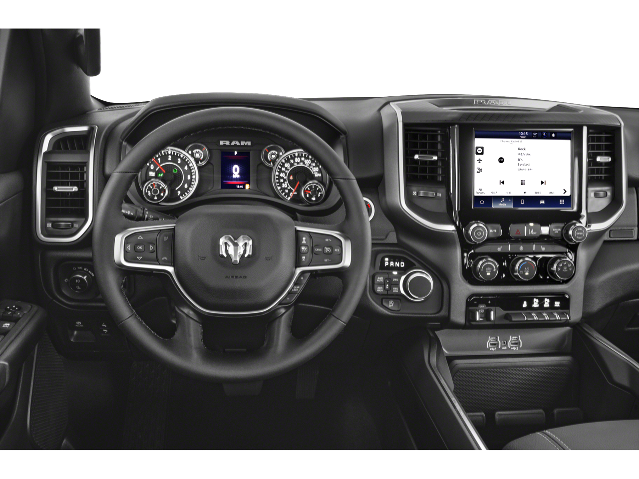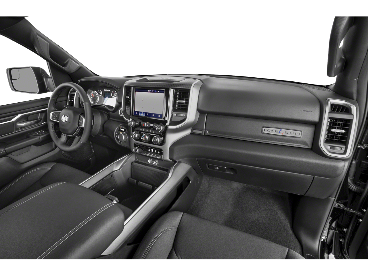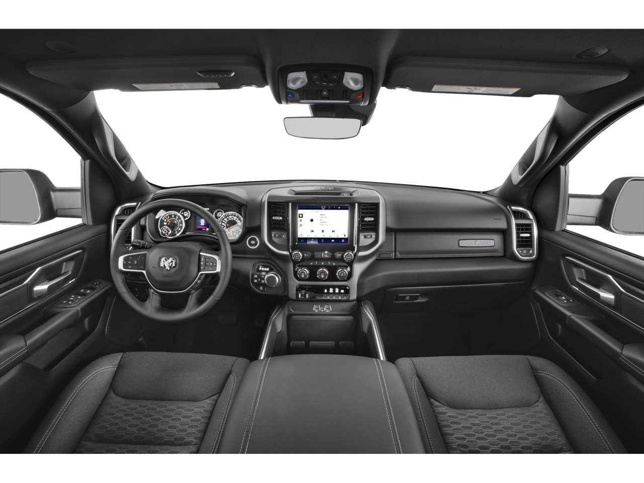 This 2025 Ram 1500 Big Horn/Lone Star in Bright White Clearcoat has the following : Big Horn Level 1 Equipment Group (115V Auxiliary Power Outlet, 2nd Row In Floor Storage Bins, 400W Inverter, Auto Power-Folding Mirrors, Auto-Dimming Exterior Driver Mirror, Auto-Dimming Rear-View Mirror, Black Exterior Mirrors, Black Premium Power Mirrors, Convex Wide-Angle Exterior Mirror Insert, Exterior Mirrors Courtesy Lamps, Exterior Mirrors w/Heating Element, Exterior Mirrors w/Supplemental Signals, Glove Box Lamp, Heated Front Seats, Heated Steering Wheel, Leather Wrapped Steering Wheel, Power 2-Way Driver Lumbar Adjust, Power Adjust 8-Way Driver Seat, Power Adjustable Pedals, Rear Power Sliding Window, Rear Window Defroster, Steering Wheel Mounted Audio Controls, Sun Visors w/Illuminated Vanity Mirrors, and Universal Garage Door Opener), Off Road Group (E-Locker Rear Axle, Falken Brand Tires, Front Extra HD Shock Absorbers, Off Road Decals, Raised Ride Height, Rear Extra HD Shock Absorbers, Selec-Speed Control, and Tow Hooks), Quick Order Package 23Z Big Horn (Big Horn Badge), 3 Rear Seat Head Restraints, 3.21 Rear Axle Ratio, 4 Way Front Headrests, 4-Wheel Disc Brakes, 4G LTE Wi-Fi Hot Spot, 6 Speakers, ABS brakes, Air Conditioning, Alloy wheels, AM/FM radio, Apple CarPlay/Android Auto, Auto High-beam Headlights, Brake assist, Bumpers: chrome, Cloth Bench Seat, Compass, Connectivity - US/Canada, Delay-off headlights, Driver door bin, Dual front impact airbags, Dual front side impact airbags, Electronic Stability Control, Front anti-roll bar, Front Center Armrest w/Storage, Front fog lights, Front License Plate Bracket, Front reading lights, Front Seat Back Map Pockets, Front wheel independent suspension, Fully automatic headlights, GPS Antenna Input, Heated door mirrors, Illuminated entry, Integrated Voice Command w/Bluetooth®, Low tire pressure warning, Manual Adjust 4-Way Front Passenger Seat, Manual Folding Exterior Mirrors, Occupant sensing airbag, Outside temperature display, Overhead airbag, Overhead console, Panic alarm, ParkView Rear Back-Up Camera, Passenger door bin, Passenger vanity mirror, Power door mirrors, Power steering, Power windows, Radio data system, Radio: Uconnect 5 W w/8.4 Display, RAM Grille Badge - Chrome, Rear 60/40 Folding Seat, Rear anti-roll bar, Rear seat center armrest, Rear step bumper, Remote keyless entry, Speed control, Split folding rear seat, Supplier Part Tracking (J-1), Tachometer, Telescoping steering wheel, Tilt steering wheel, Traction control, Trailer Brake Control, Trip computer, USB Host Flip, Variably intermittent wipers, Voltmeter, and Wheels: 18 x 8 Cast-Aluminum Painted.