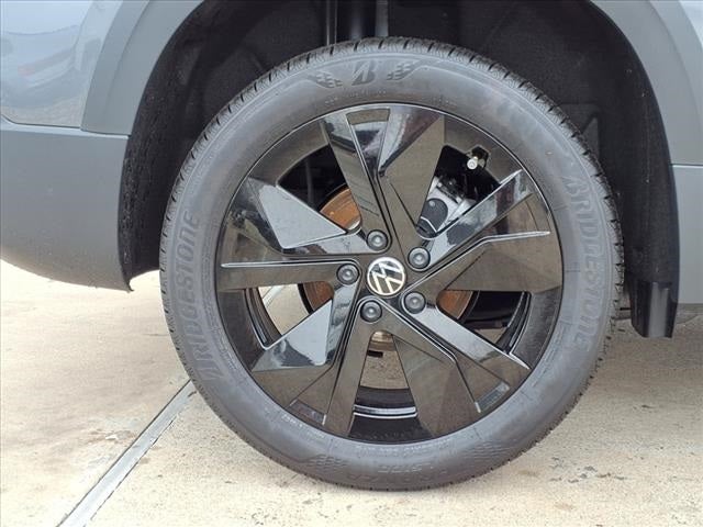 This 2025 Volkswagen Taos 1.5T SE in Gray has the following : Black Wheel Package (Wheels: 18 Black Painted Alloy), Taos MDO Package (Luggage Net and Rubber Mats Kit), 4-Wheel Disc Brakes, 6 Speakers, ABS brakes, Active Blind Spot Monitor, Air Conditioning, Alloy wheels, AM/FM radio: SiriusXM with 360L, Auto High-beam Headlights, Automatic temperature control, Brake assist, Bumpers: body-color, Compass, Delay-off headlights, Driver door bin, Driver vanity mirror, Dual front impact airbags, Dual front side impact airbags, Electronic Stability Control, Emergency communication system: VW Car-Net Safe & Secure 5-year, Exterior Parking Camera Rear, Front anti-roll bar, Front Bucket Seats, Front Center Armrest, Front dual zone A/C, Front reading lights, Front Strut Rear Torsion Beam Suspension, Front wheel independent suspension, Fully automatic headlights, Heated door mirrors, Heated Front Bucket Seats, Heated front seats, Heated steering wheel, Illuminated entry, Leather Shift Knob, Low tire pressure warning, Occupant sensing airbag, Outside temperature display, Overhead airbag, Overhead console, Panic alarm, Passenger door bin, Passenger vanity mirror, Power door mirrors, Power driver seat, Power steering, Power windows, Radio data system, Radio: MIB3 Composition Media AM/FM/HD, Rain sensing wipers, Rear anti-roll bar, Rear seat center armrest, Rear window defroster, Rear window wiper, Remote keyless entry, Security system, Speed control, Speed-sensing steering, Split folding rear seat, Spoiler, Steering wheel mounted audio controls, Tachometer, Telescoping steering wheel, Tilt steering wheel, Traction control, Trip computer, Variably intermittent wipers, VW Care, and Wheels: 18 2-Tone Machined Alloy.